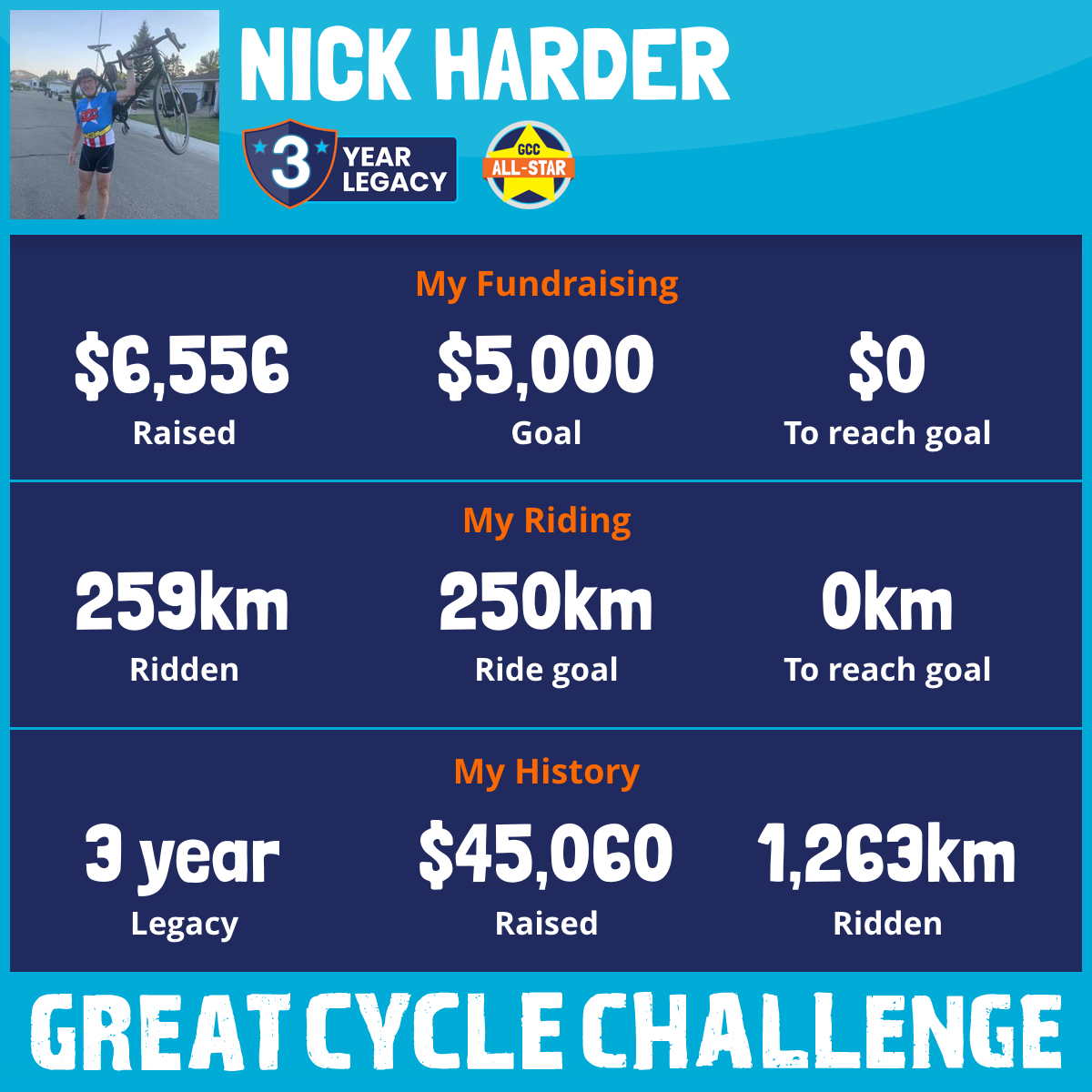 Why? Because I lost my Dad to cancer and he was an avid rider and rode in a few charities all to help children fighting cancer. It is an honor to ride in his memory. And because right now, over 1,700 children are diagnosed with cancer every year, and it's the biggest killer of children from disease in Canada.