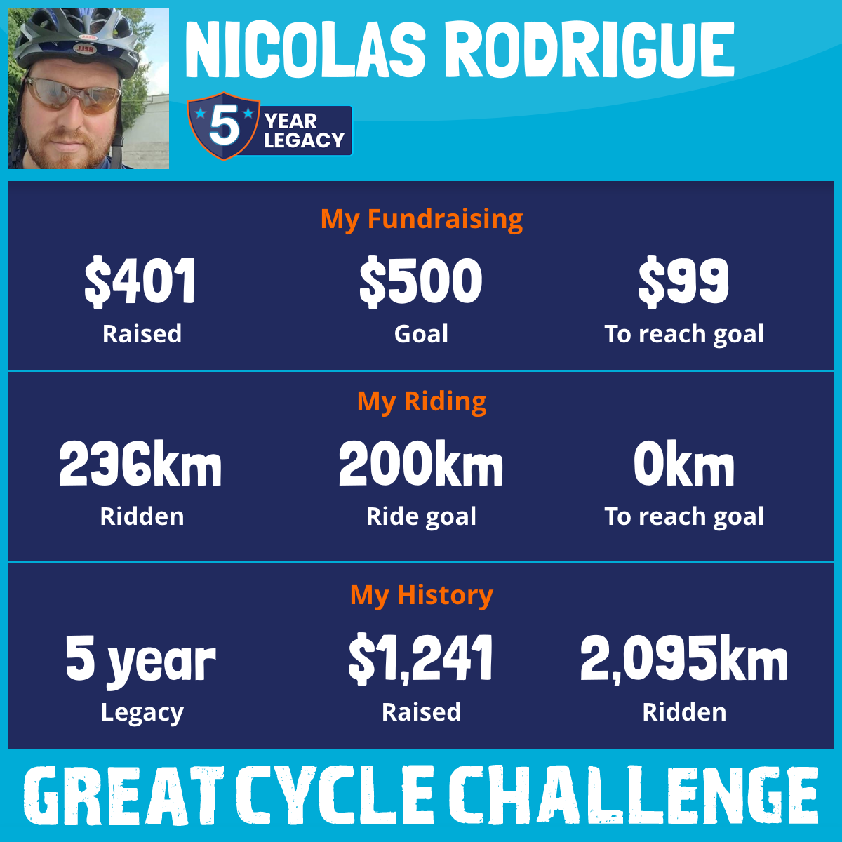 236 km Ridden$401 Raised2026