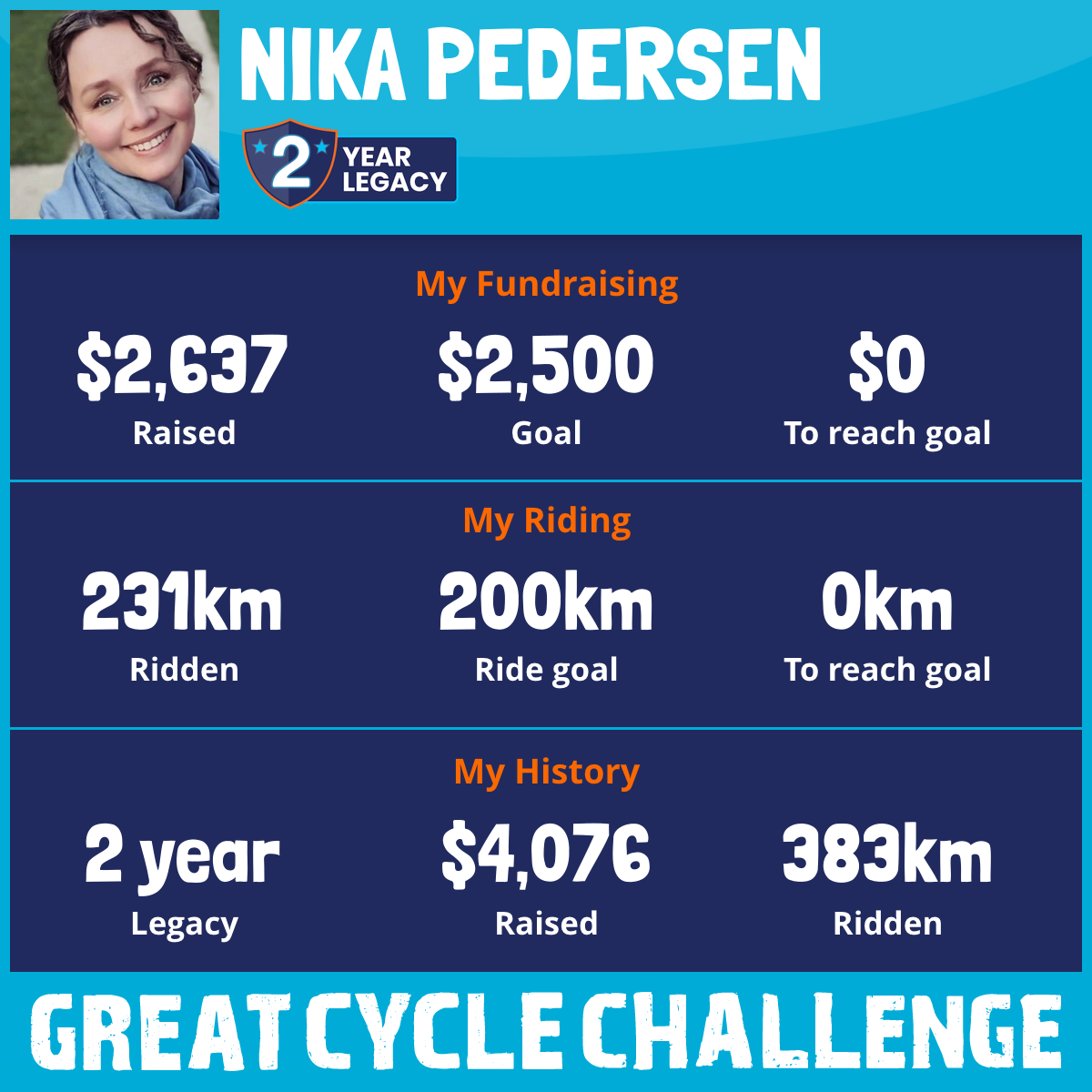 231 km Ridden$2,637 Raised2026