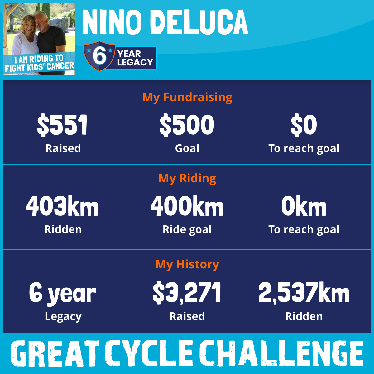 I am riding 400 km in memory of my sister, Dea and Rossana De Luca. Please sponsor me and support my challenge to fight kids' cancer and save little lives.