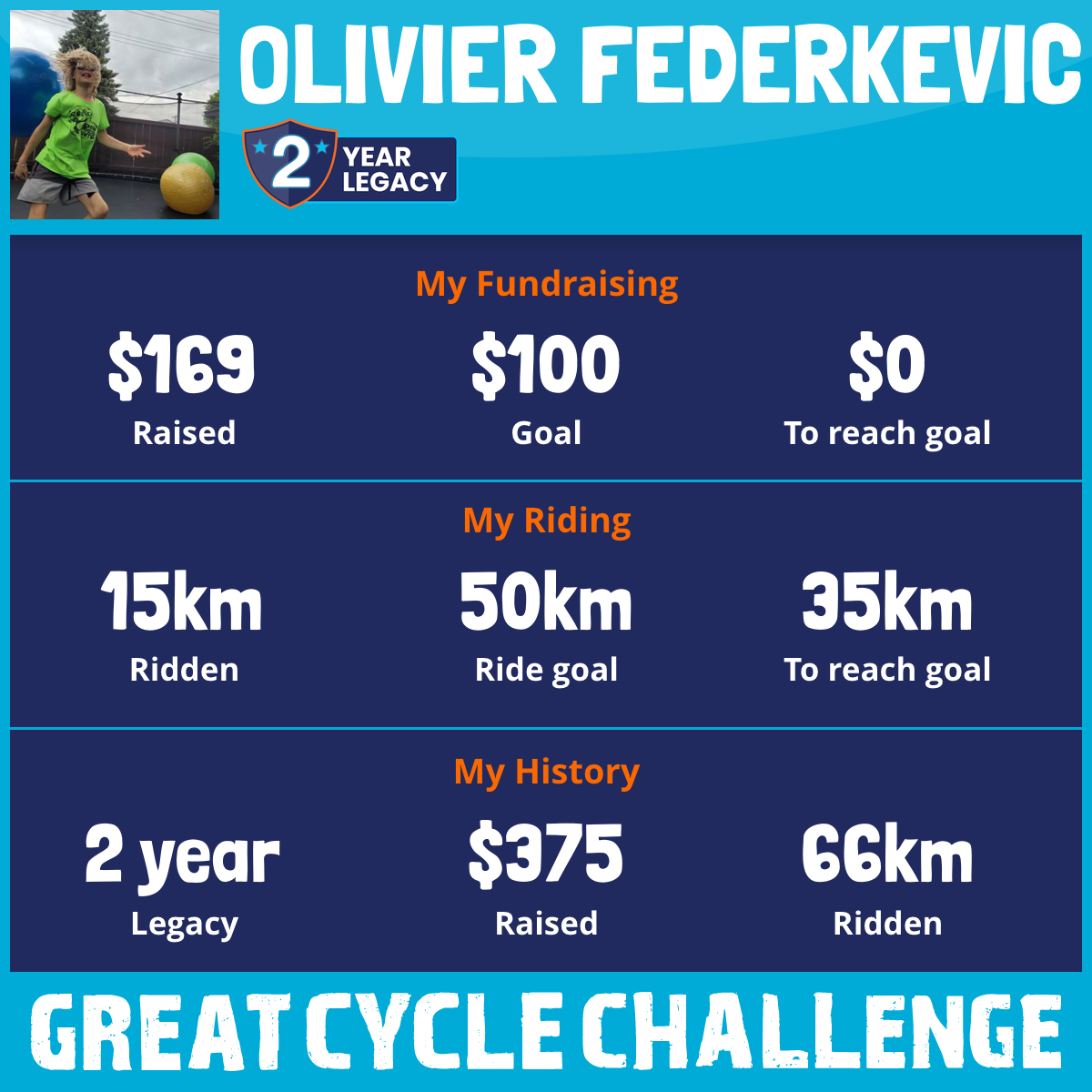 I am riding 50 km in memory of Evelyn Roy and Ronan Thompson. Please sponsor me and support my challenge to fight kids' cancer and save little lives.