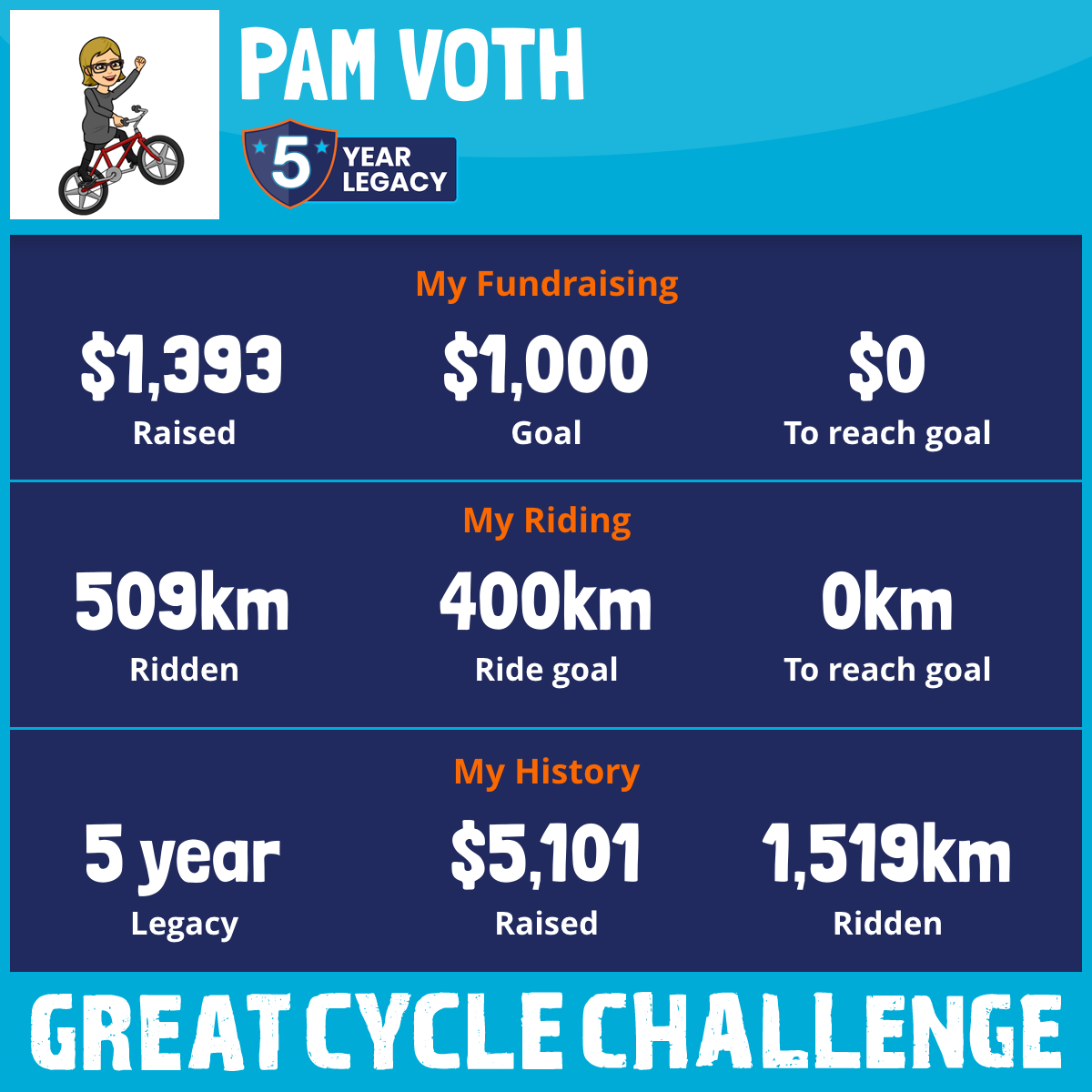 509 km Ridden$1,393 Raised2025