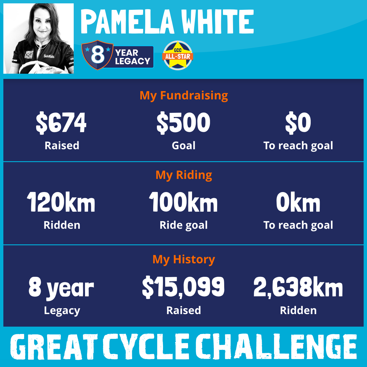 120 km Ridden$674 Raised2026