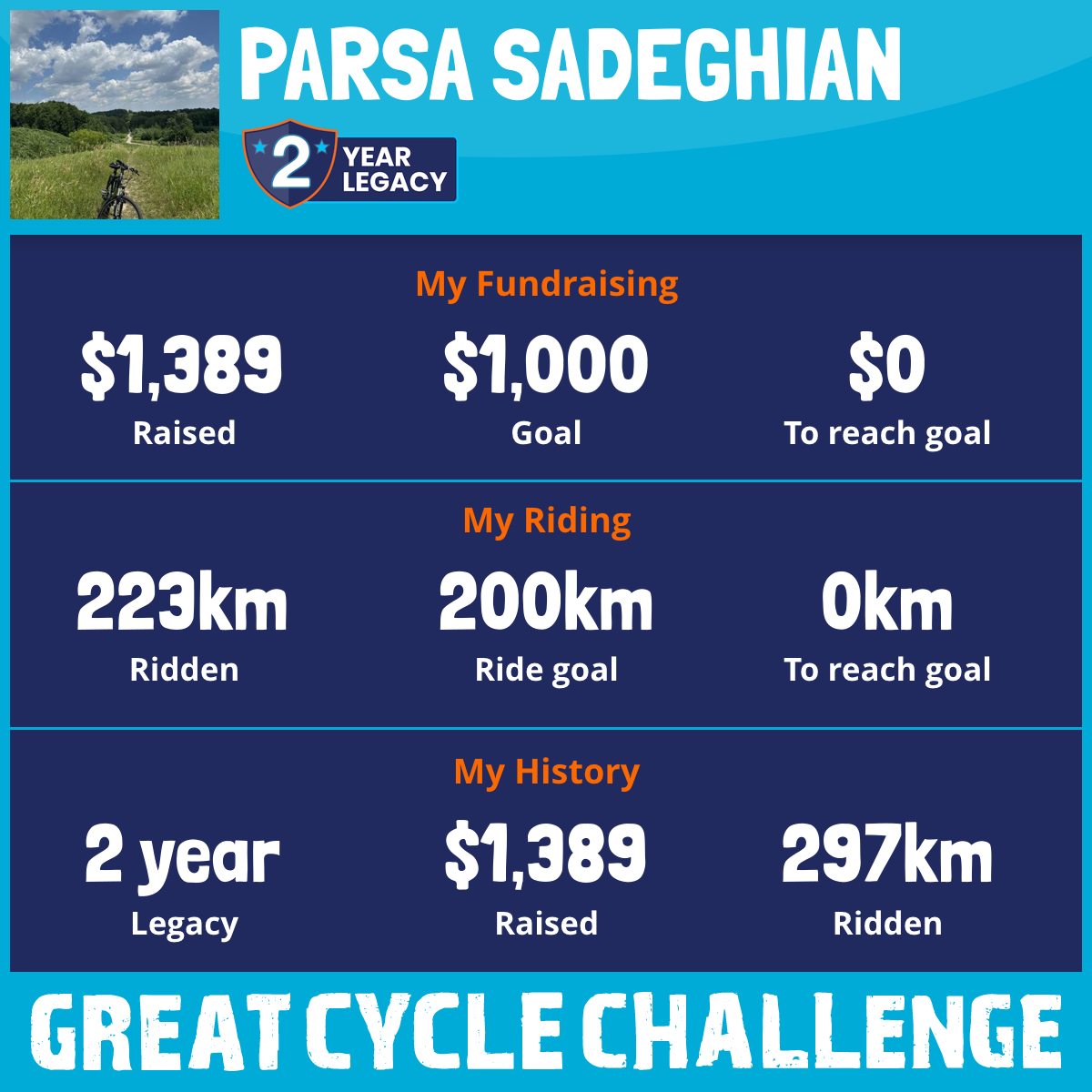 223 km Ridden$1,389 Raised2025