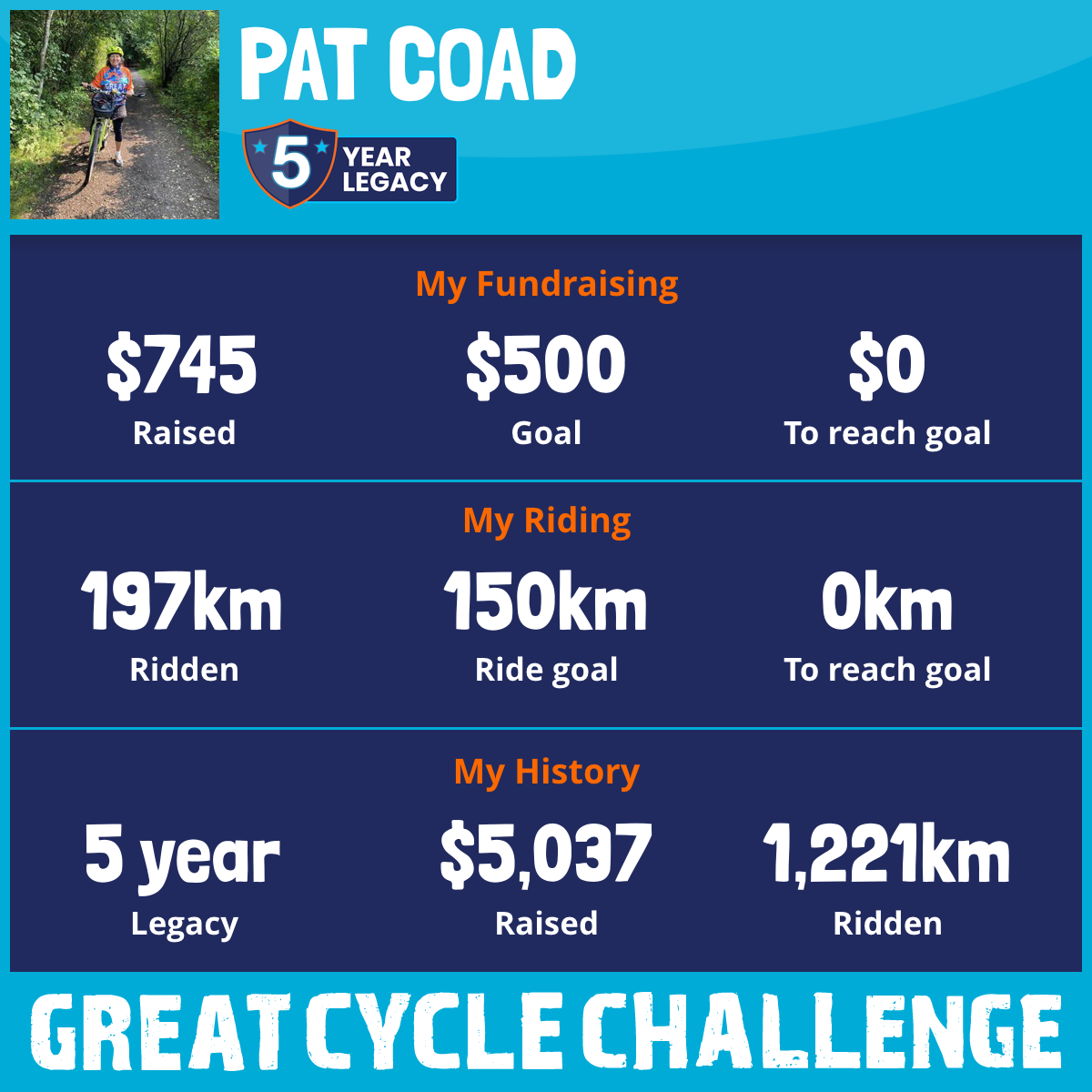 197 km Ridden$745 Raised2025