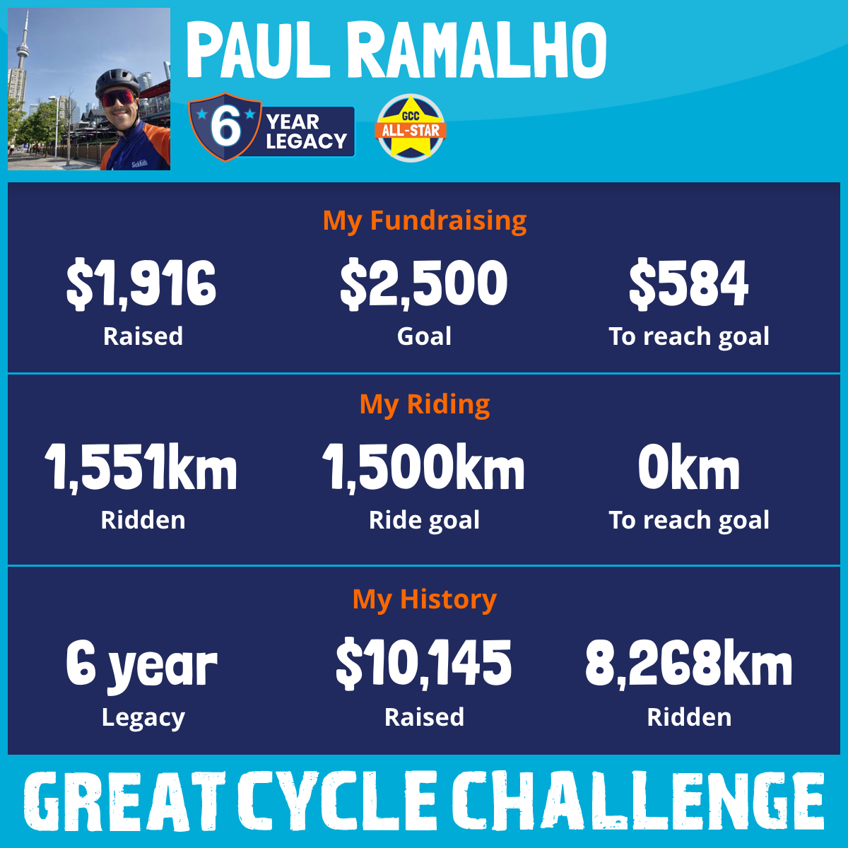 1,551 km Ridden$1,916 Raised2025