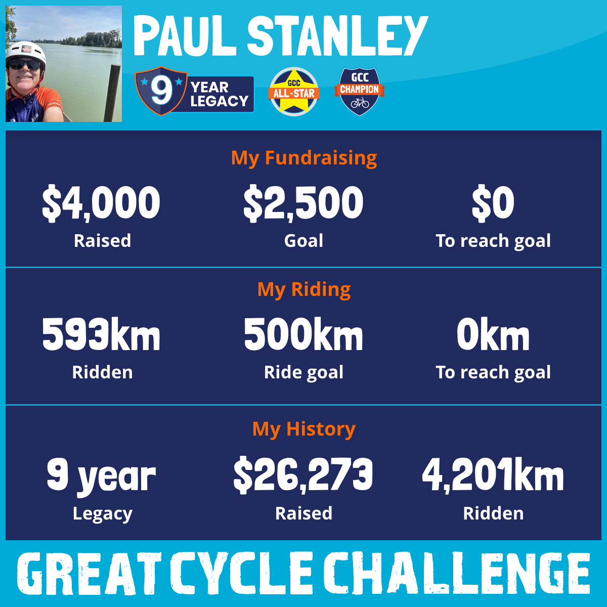 593 km Ridden$4,000 Raised2025