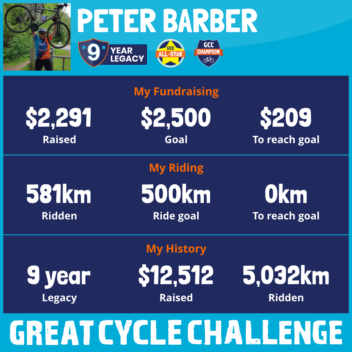 581 km Ridden$2,291 Raised2025