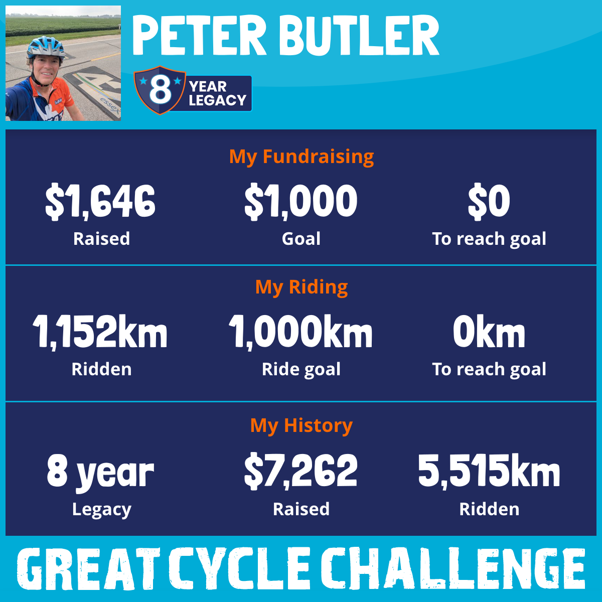 1,152 km Ridden$1,646 Raised2025