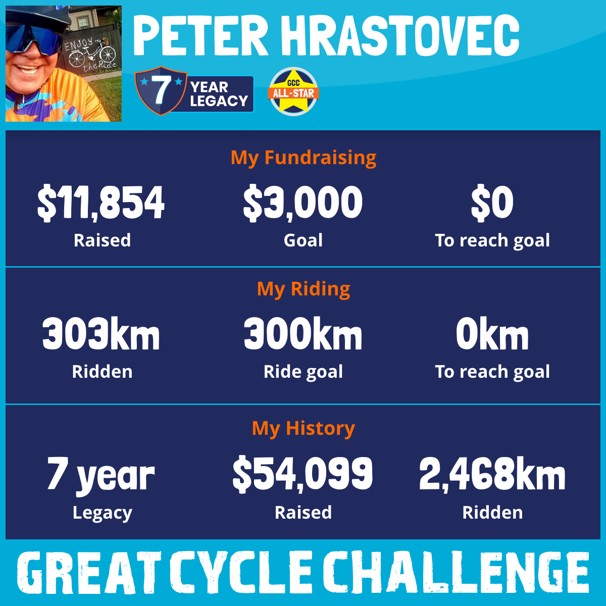 303 km Ridden$11,854 Raised2026