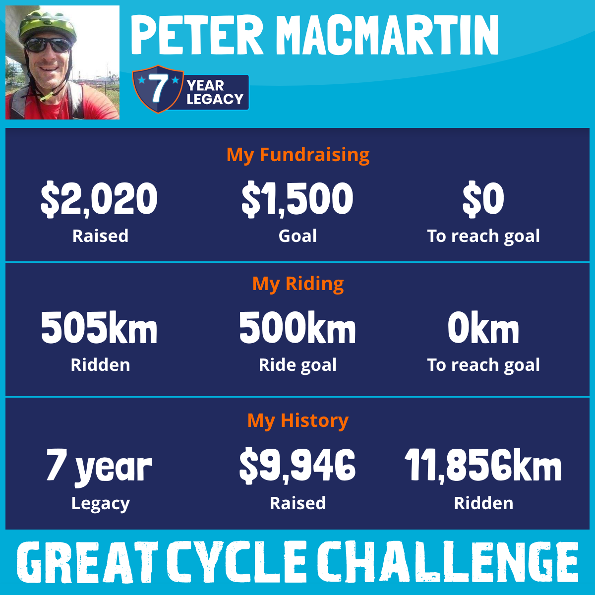 3,922 km Ridden$1,765 Raised2019