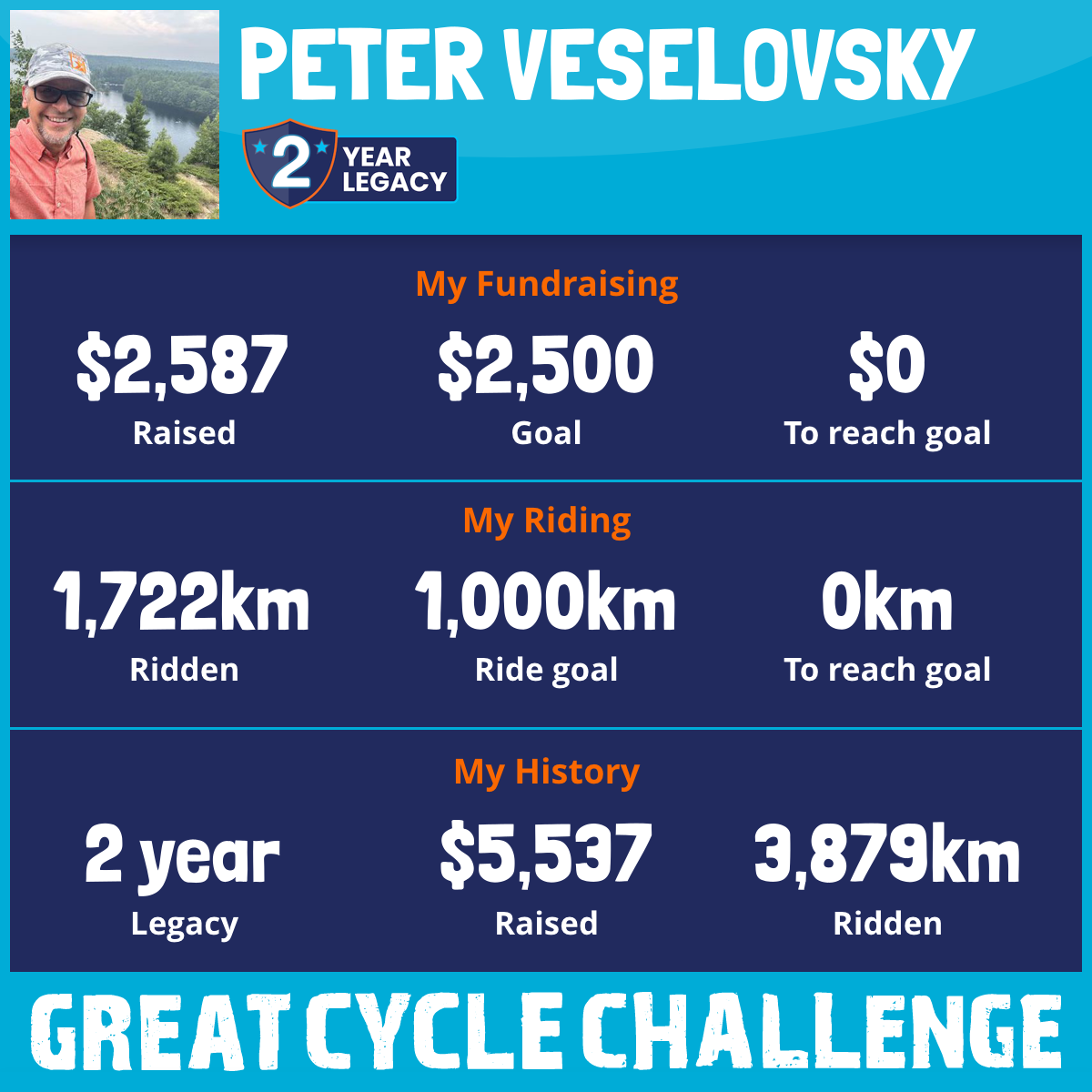 1,722 km Ridden$2,587 Raised2026