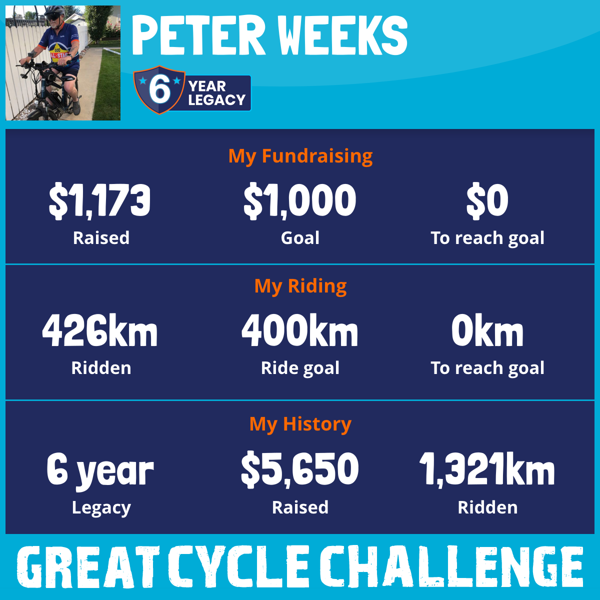 426 km Ridden$1,173 Raised2025