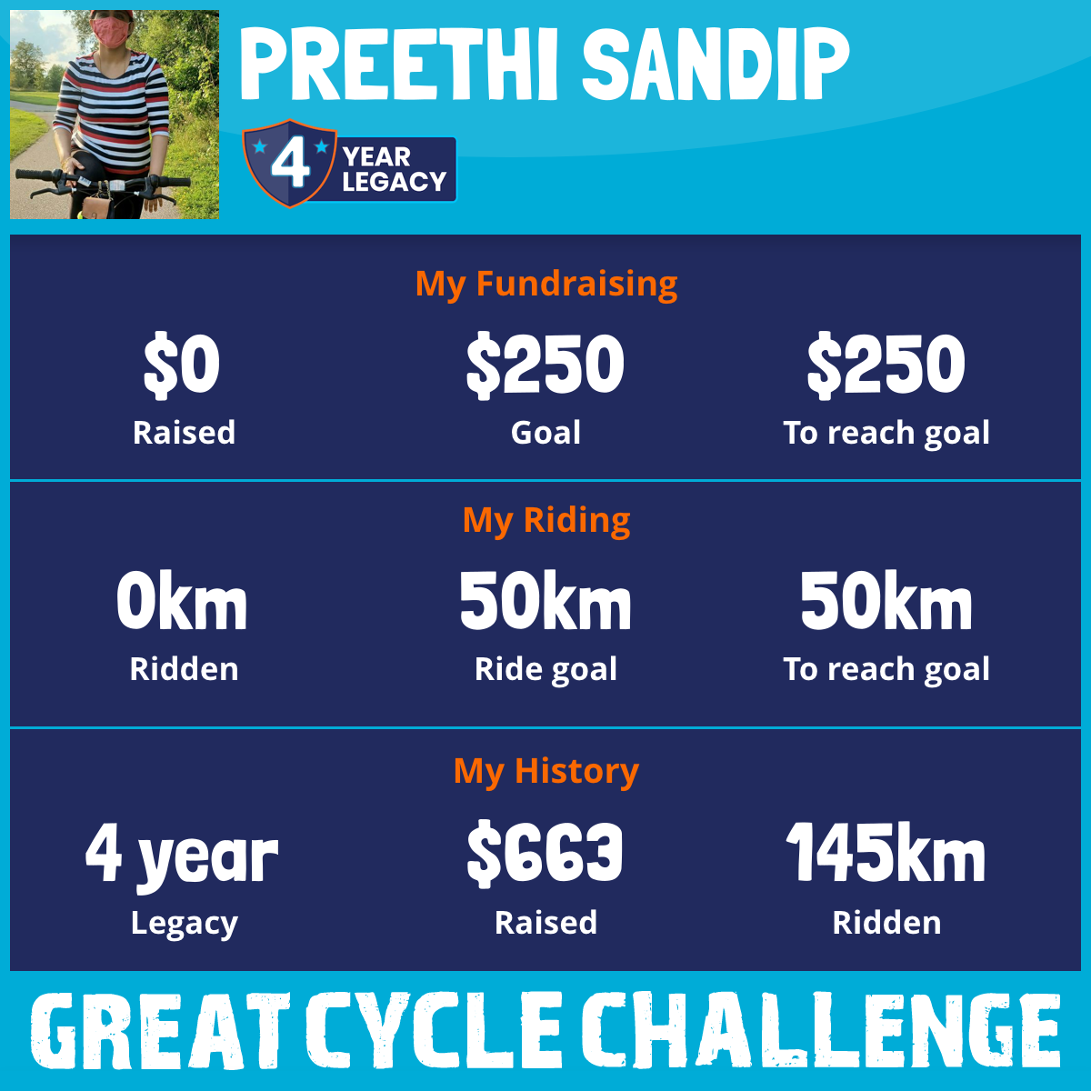 41 km Ridden$181 Raised2023