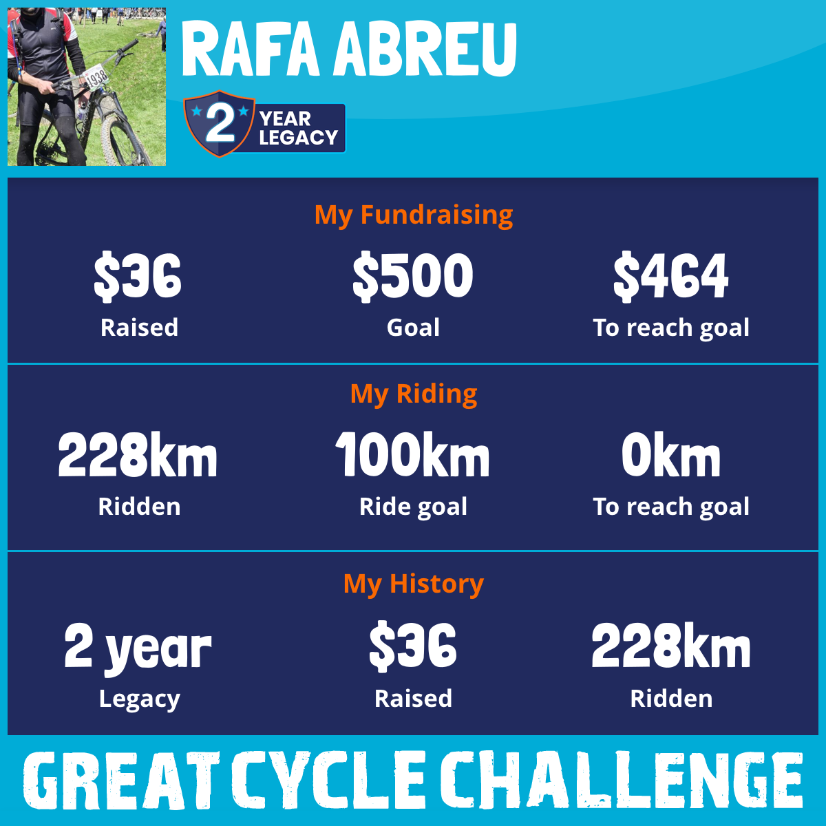 228 km Ridden$36 Raised2026
