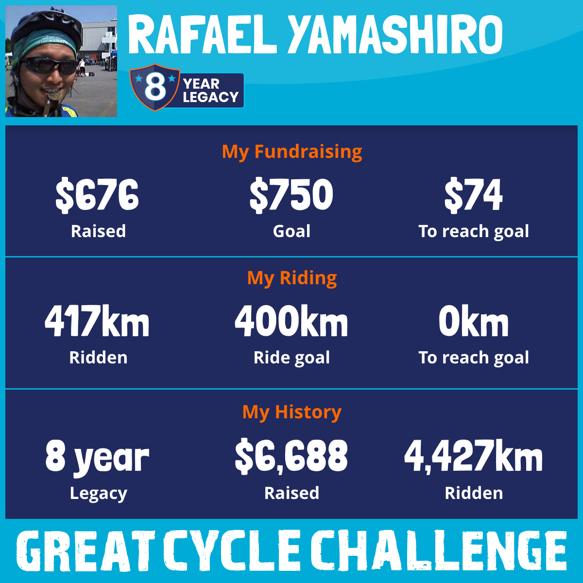 417 km Ridden$676 Raised2025