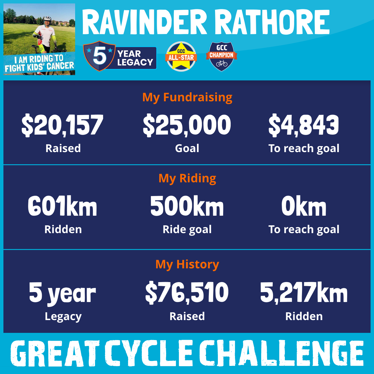 601 km Ridden$20,157 Raised2025