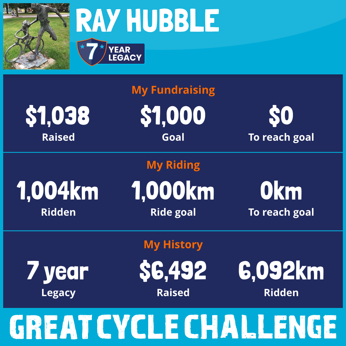1,004 km Ridden$1,038 Raised2026