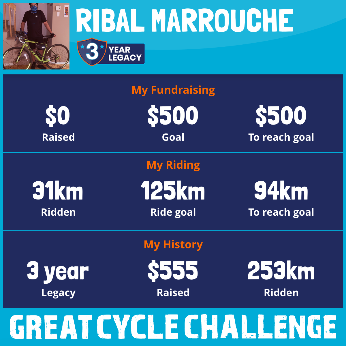 222 km Ridden$555 Raised2020