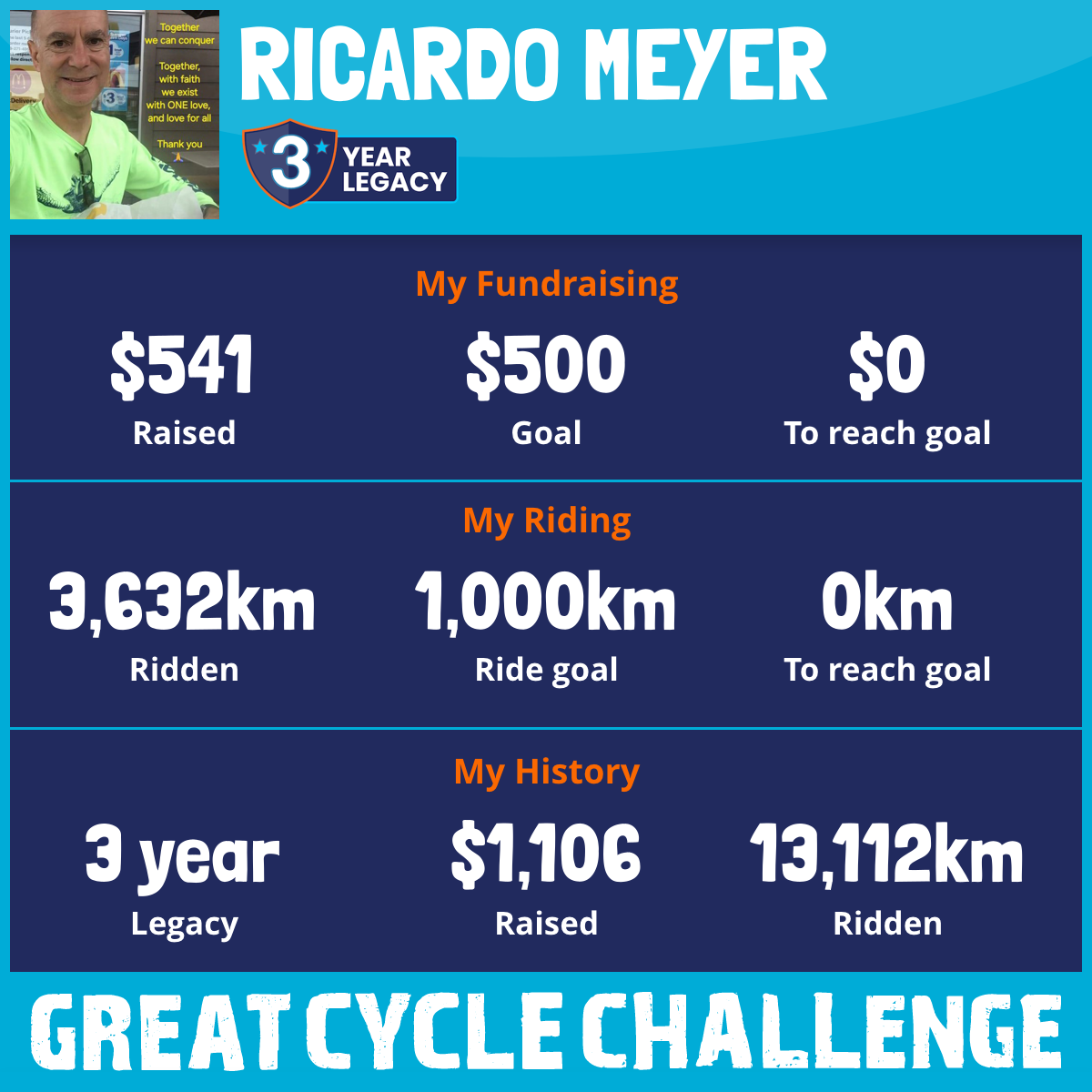 3,632 km Ridden$541 Raised2026