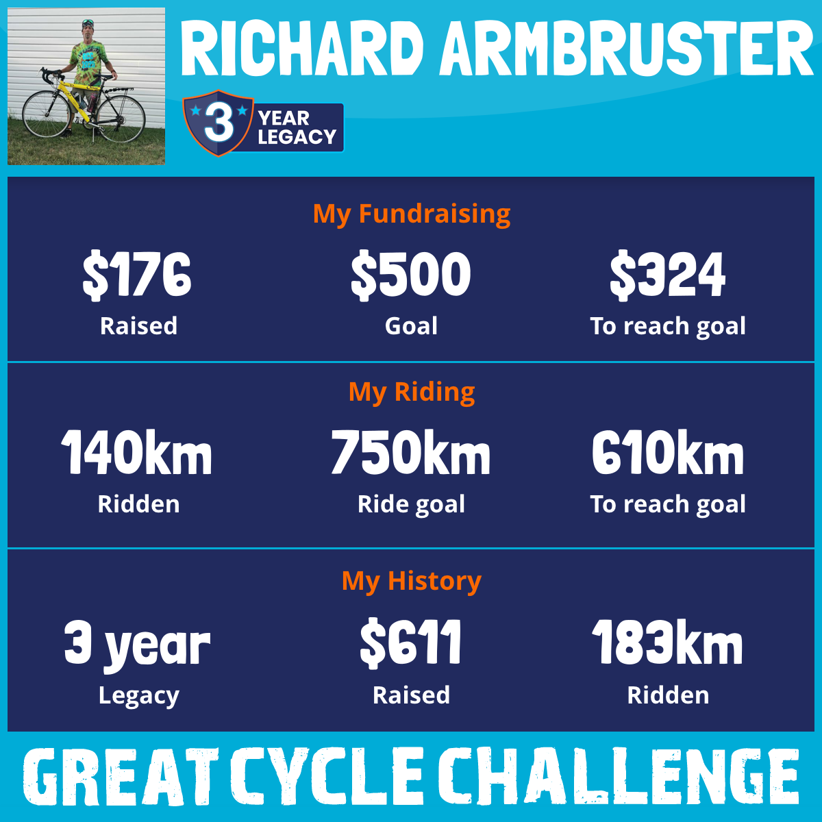 140 km Ridden$176 Raised2026