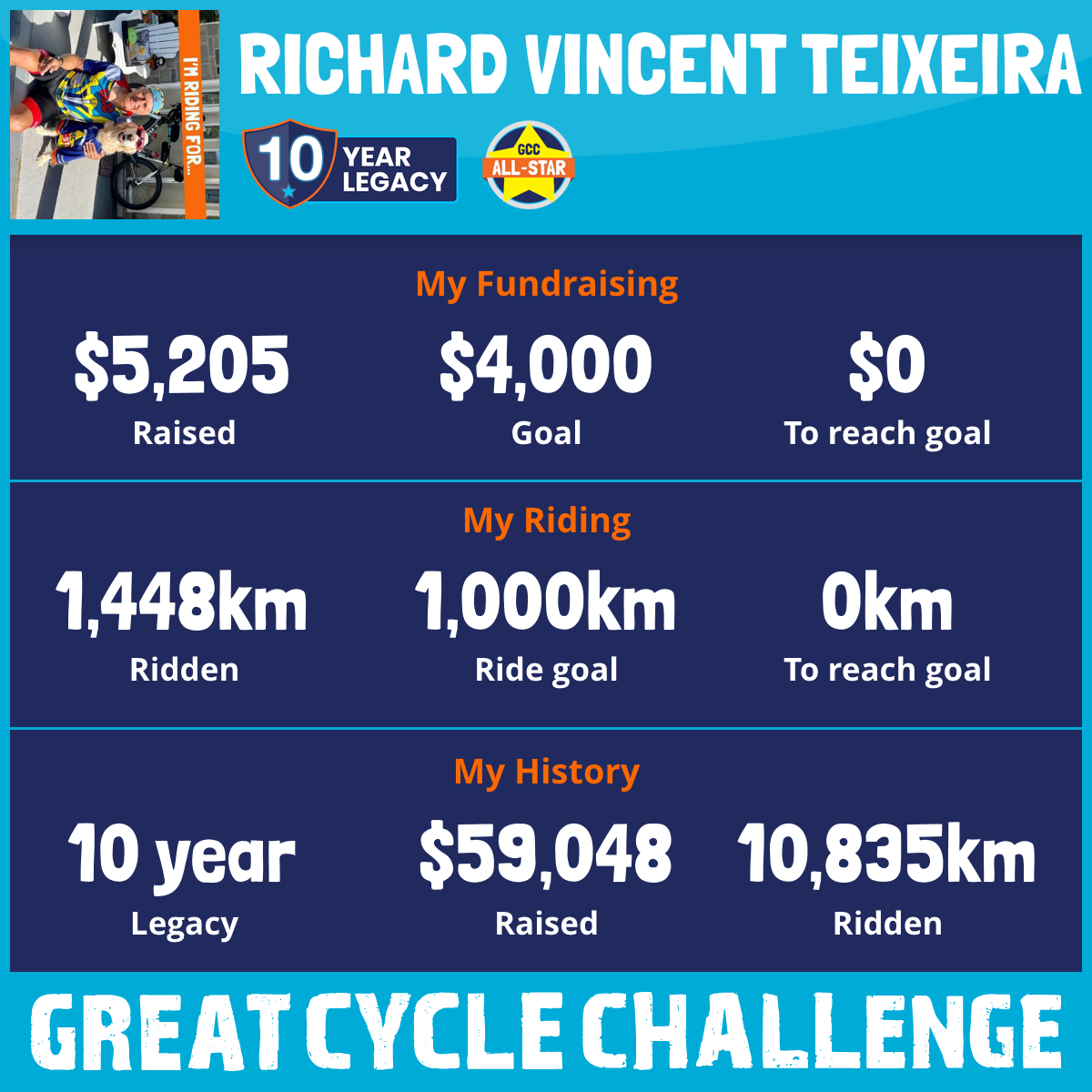 1,448 km Ridden$5,205 Raised2025