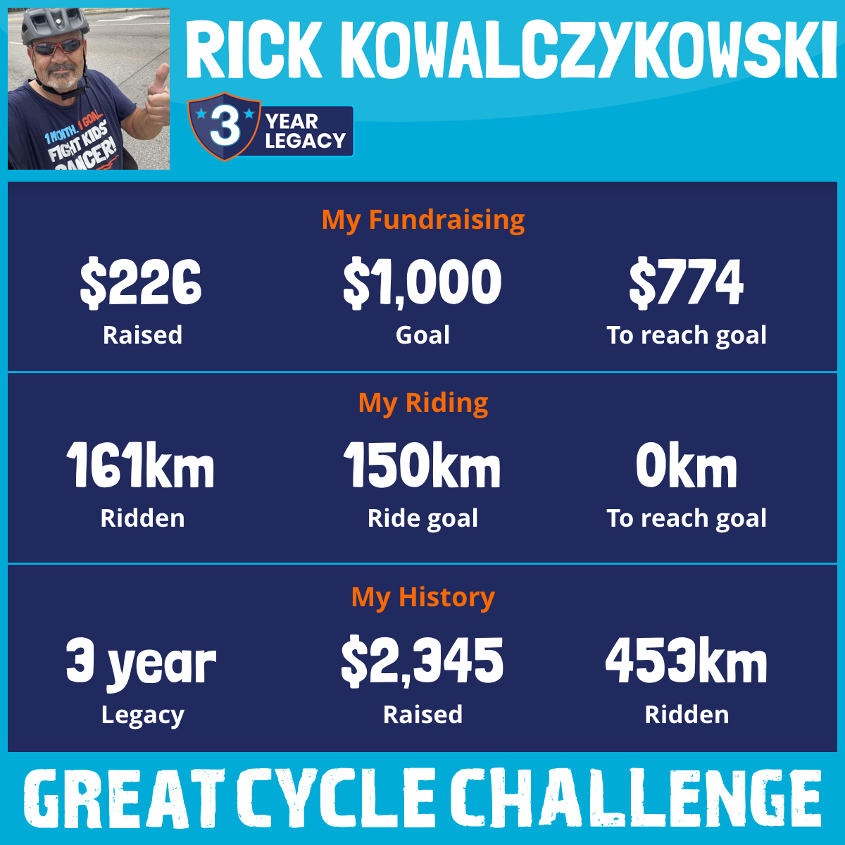 161 km Ridden$226 Raised2026