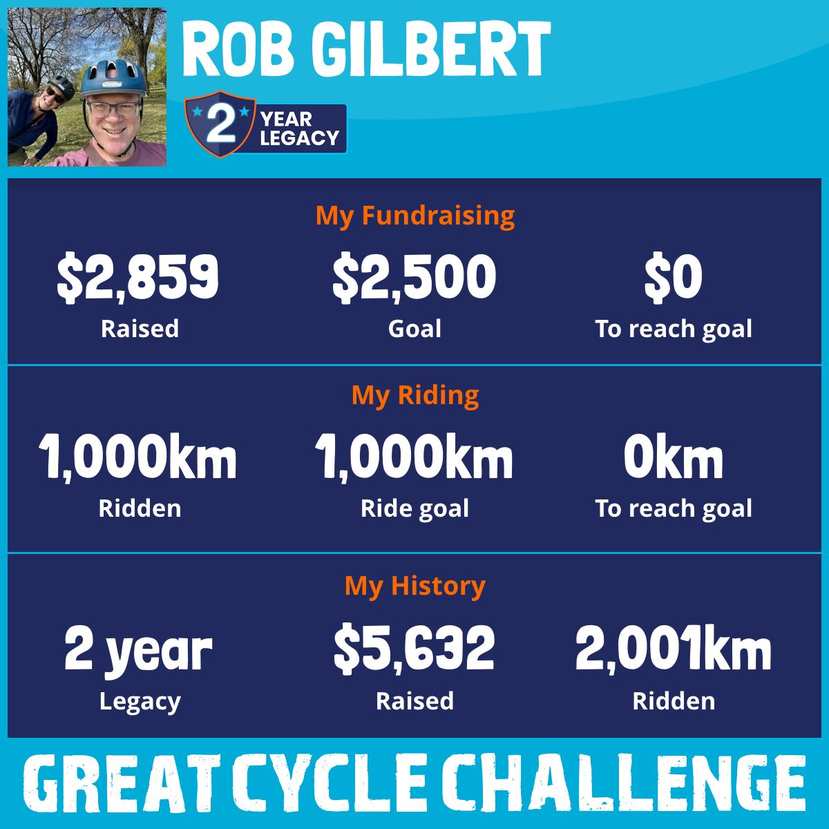 1,000 km Ridden$2,859 Raised2025