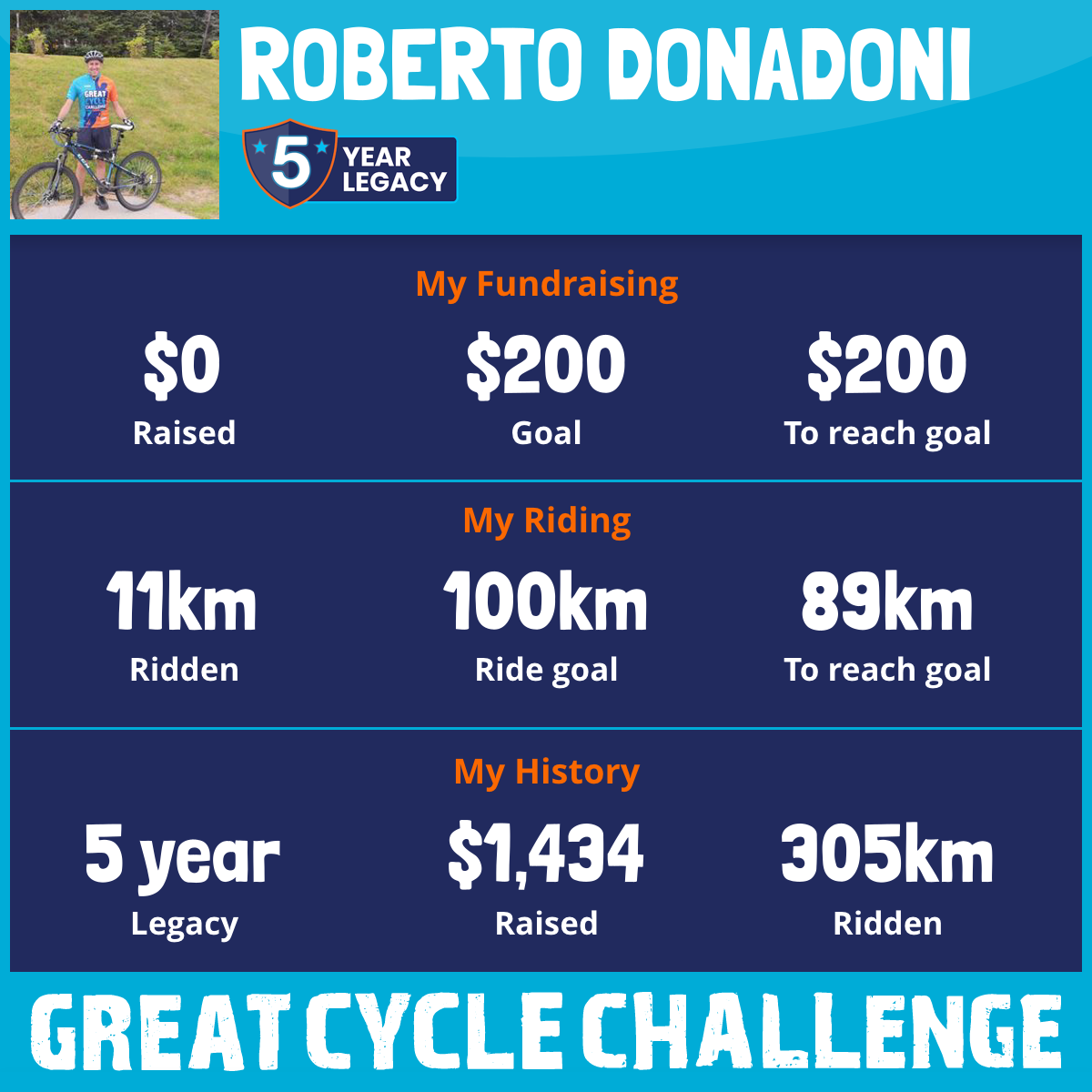 123 km Ridden$1,231 Raised2019