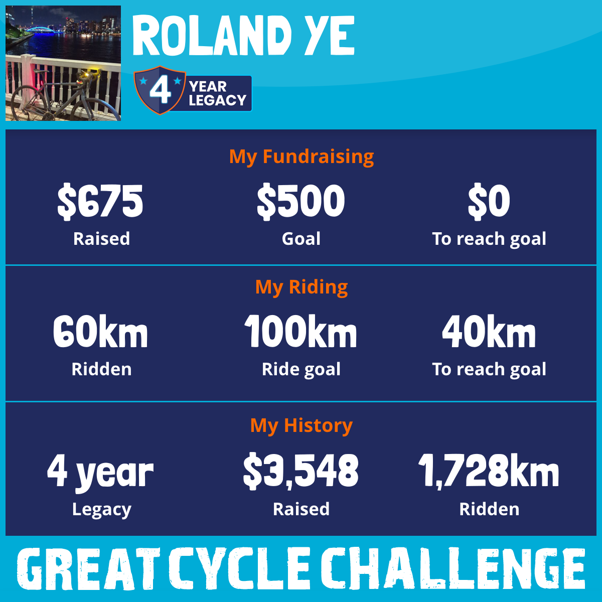 1,446 km Ridden$939 Raised2023