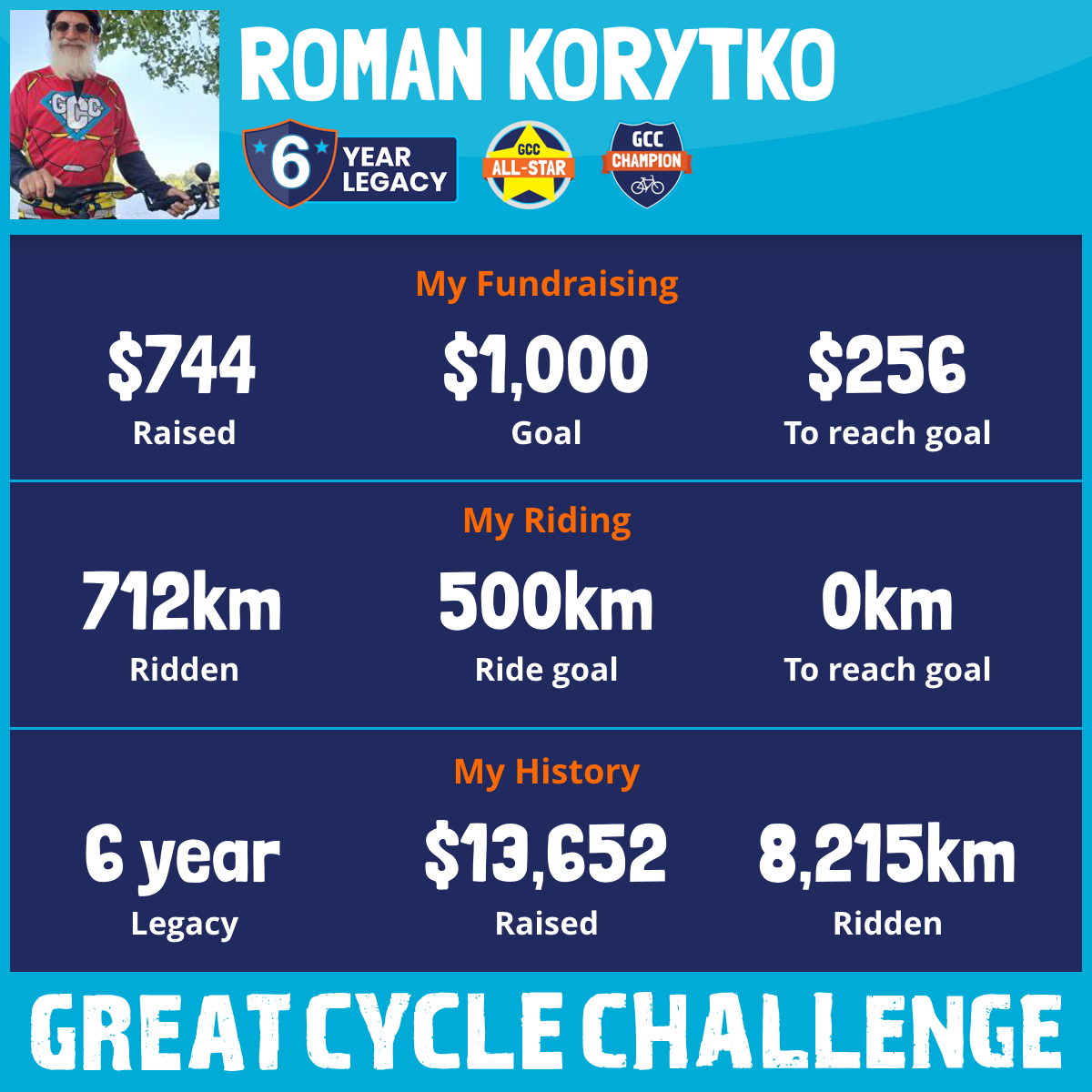 2,205 km Ridden$4,187 Raised2023