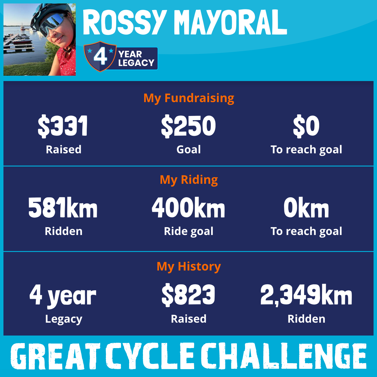 581 km Ridden$331 Raised2025