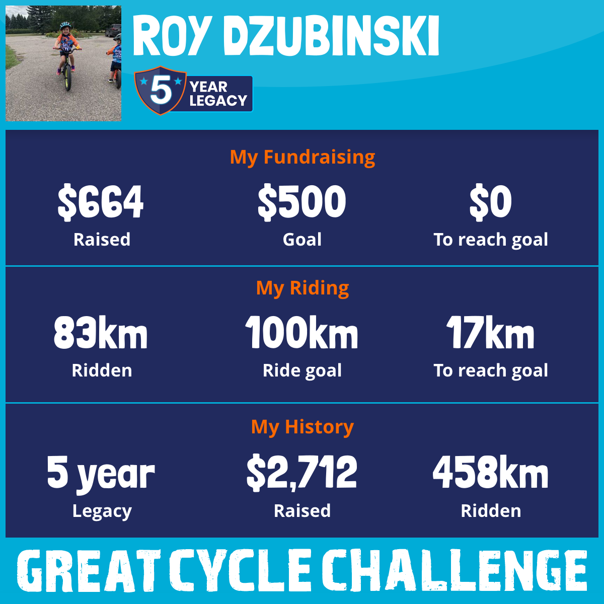83 km Ridden$664 Raised2025