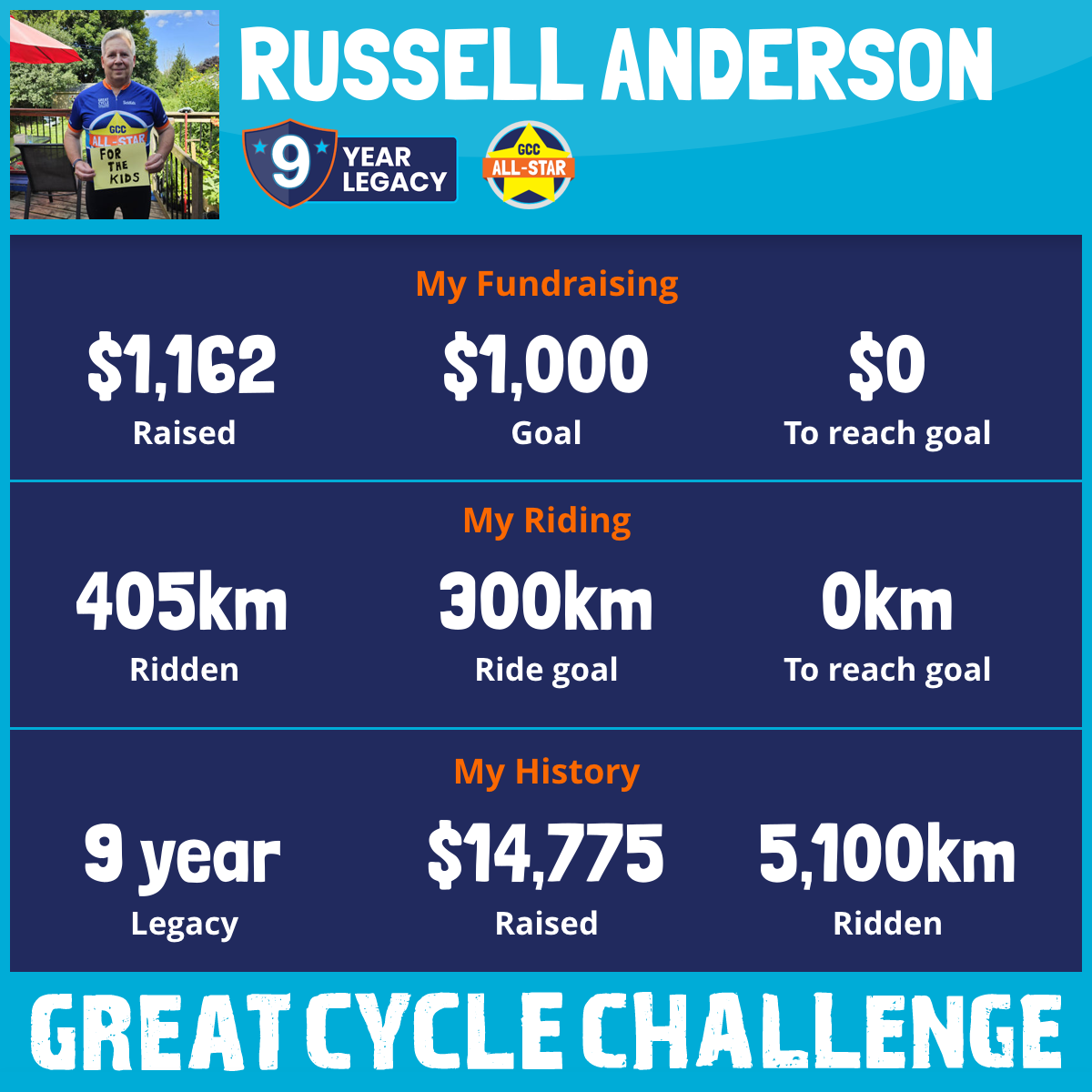 405 km Ridden$1,162 Raised2026