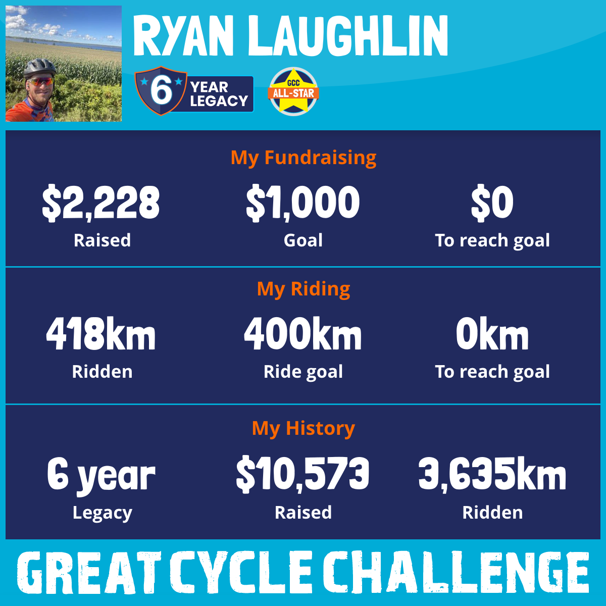 423 km Ridden$1,500 Raised2023