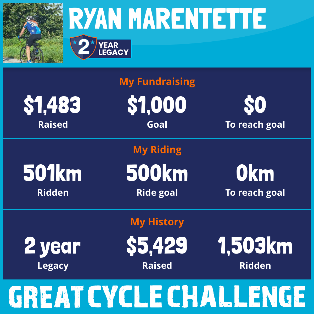 501 km Ridden$1,483 Raised2025