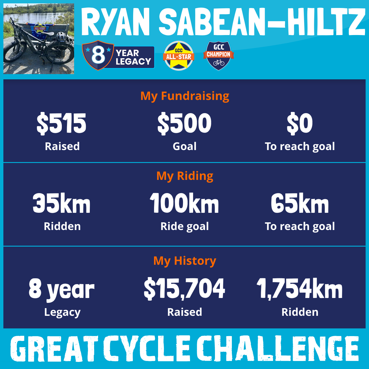 300 km Ridden$2,980 Raised2022