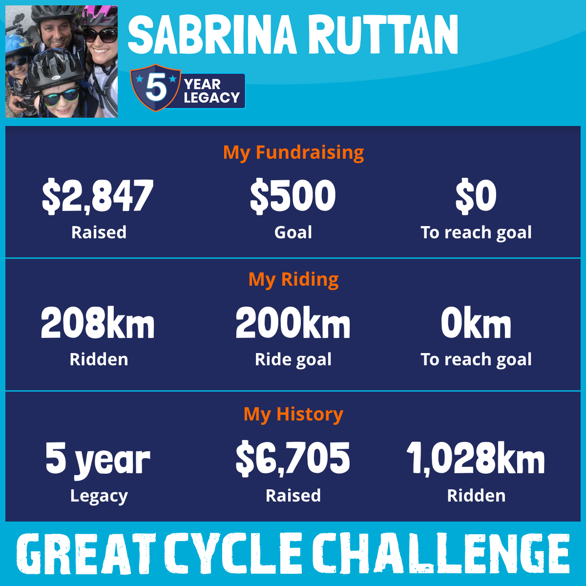203 km Ridden$1,004 Raised2023