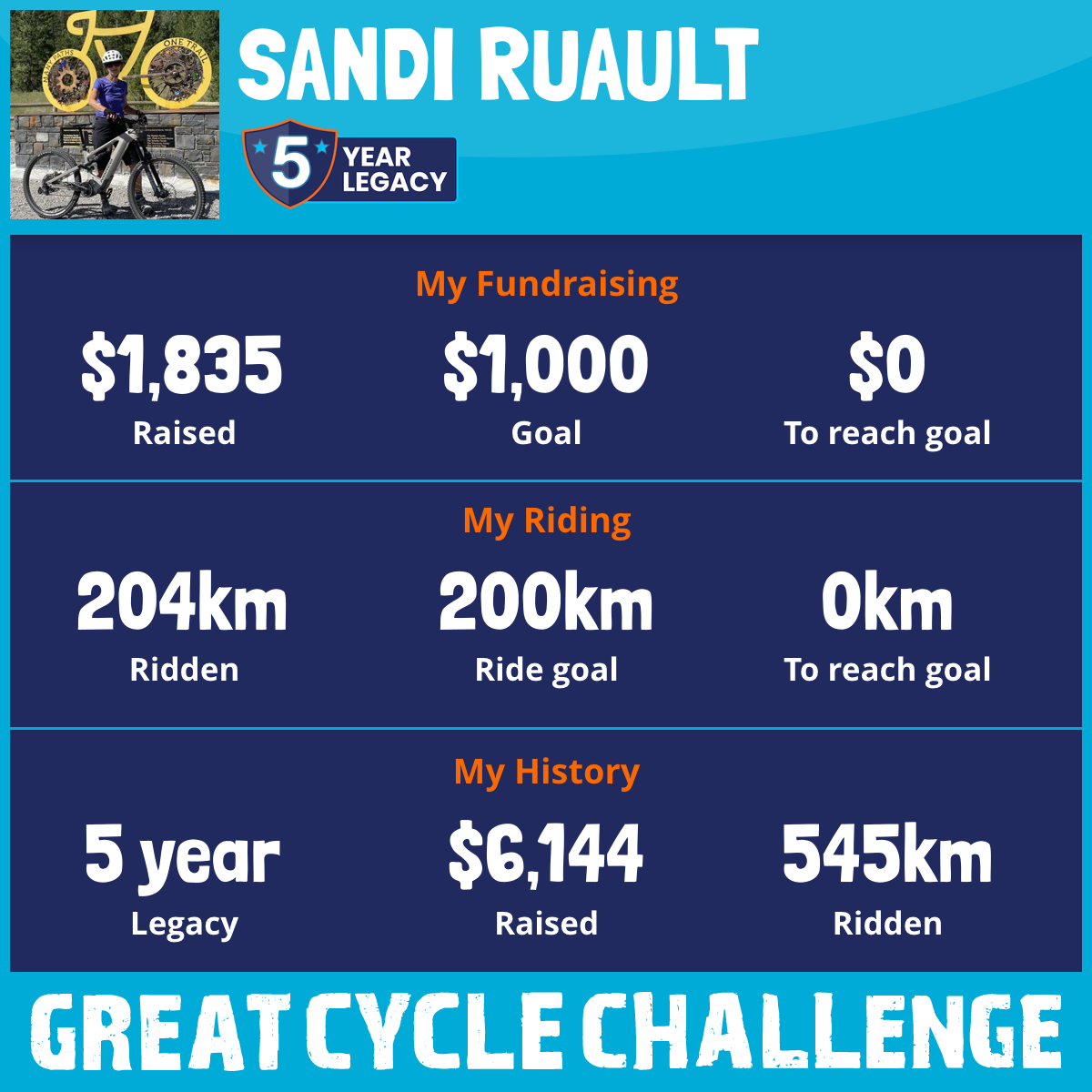204 km Ridden$1,835 Raised2026