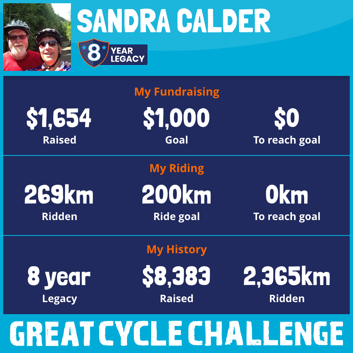 269 km Ridden$1,654 Raised2025