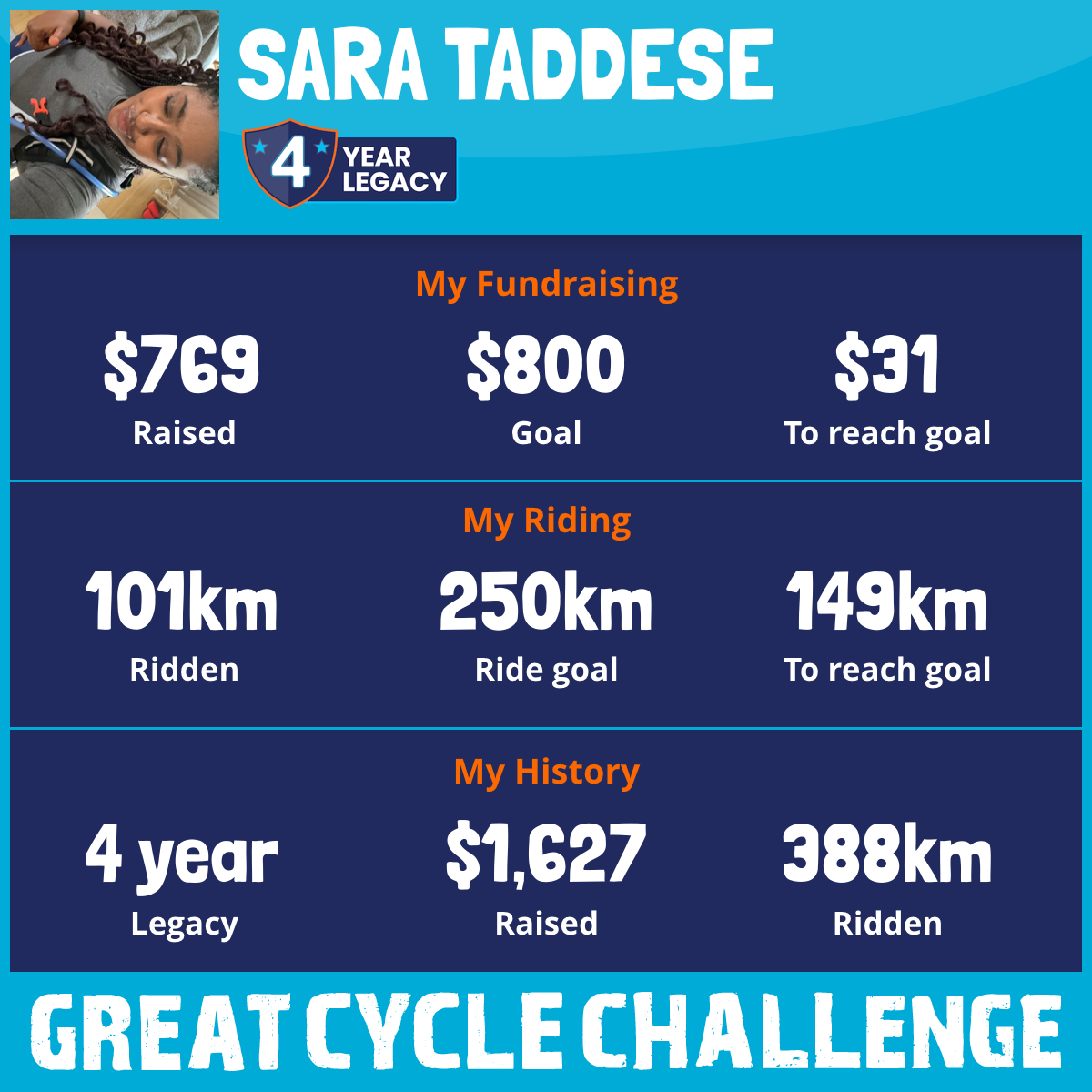 101 km Ridden$769 Raised2025