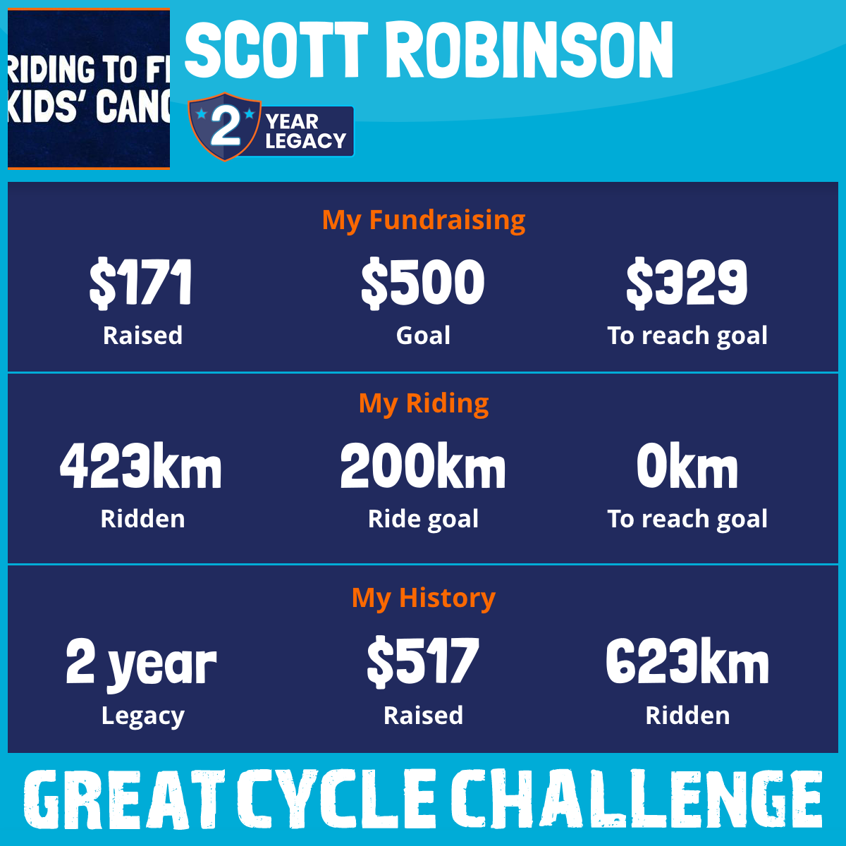 423 km Ridden$171 Raised2026