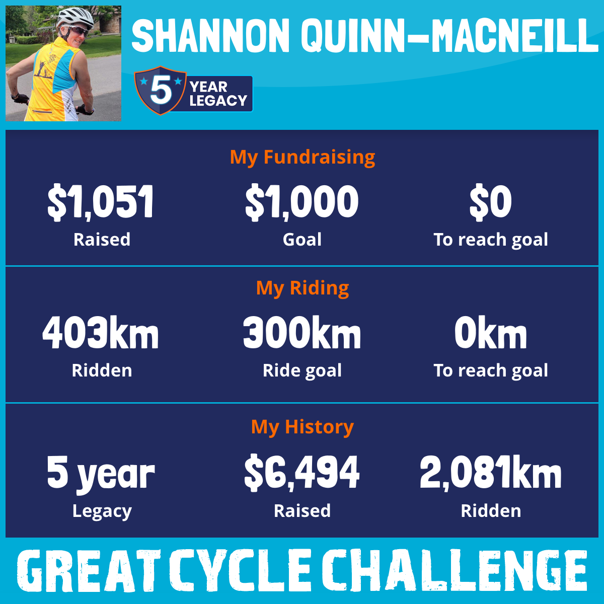 403 km Ridden$1,051 Raised2026