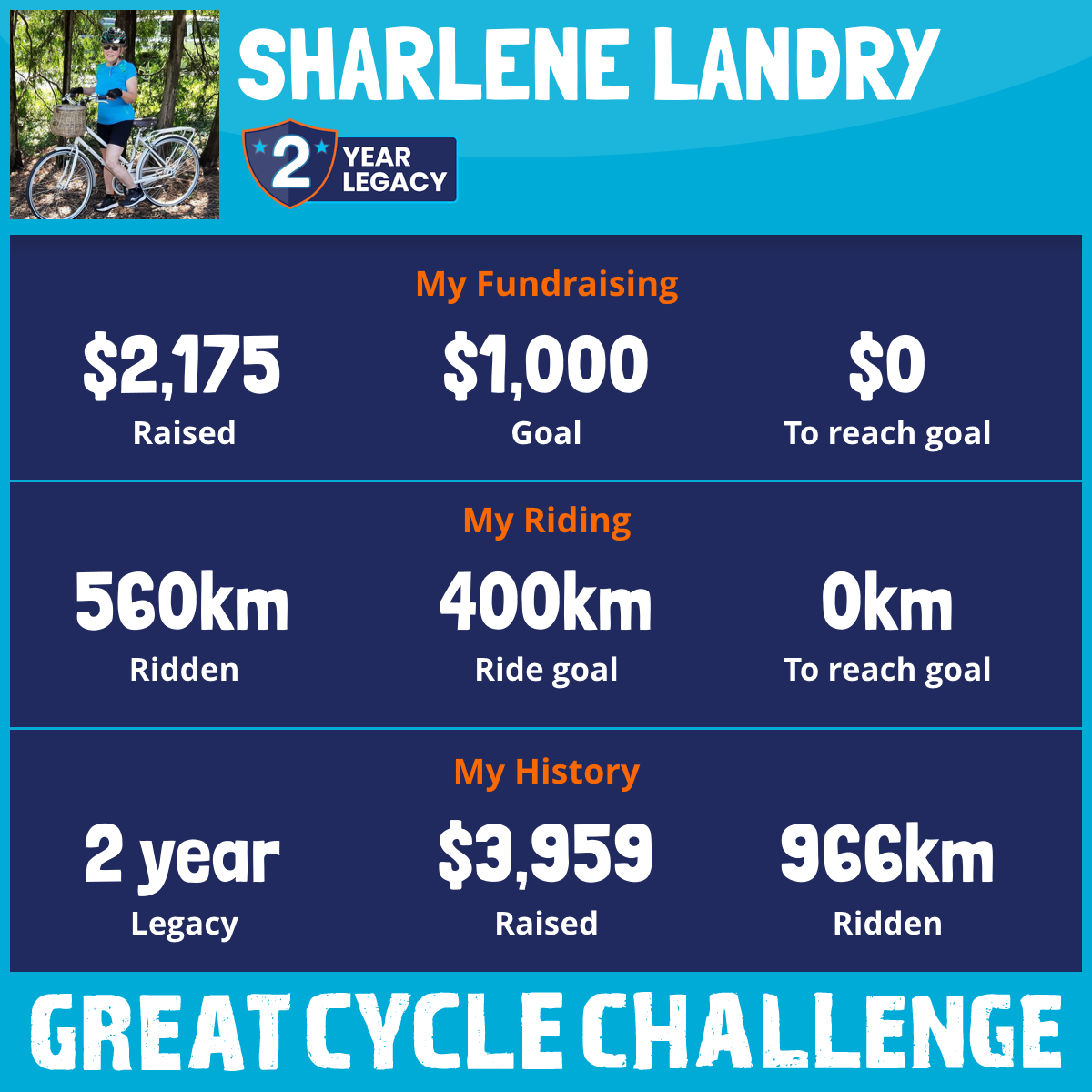 560 km Ridden$2,175 Raised2025