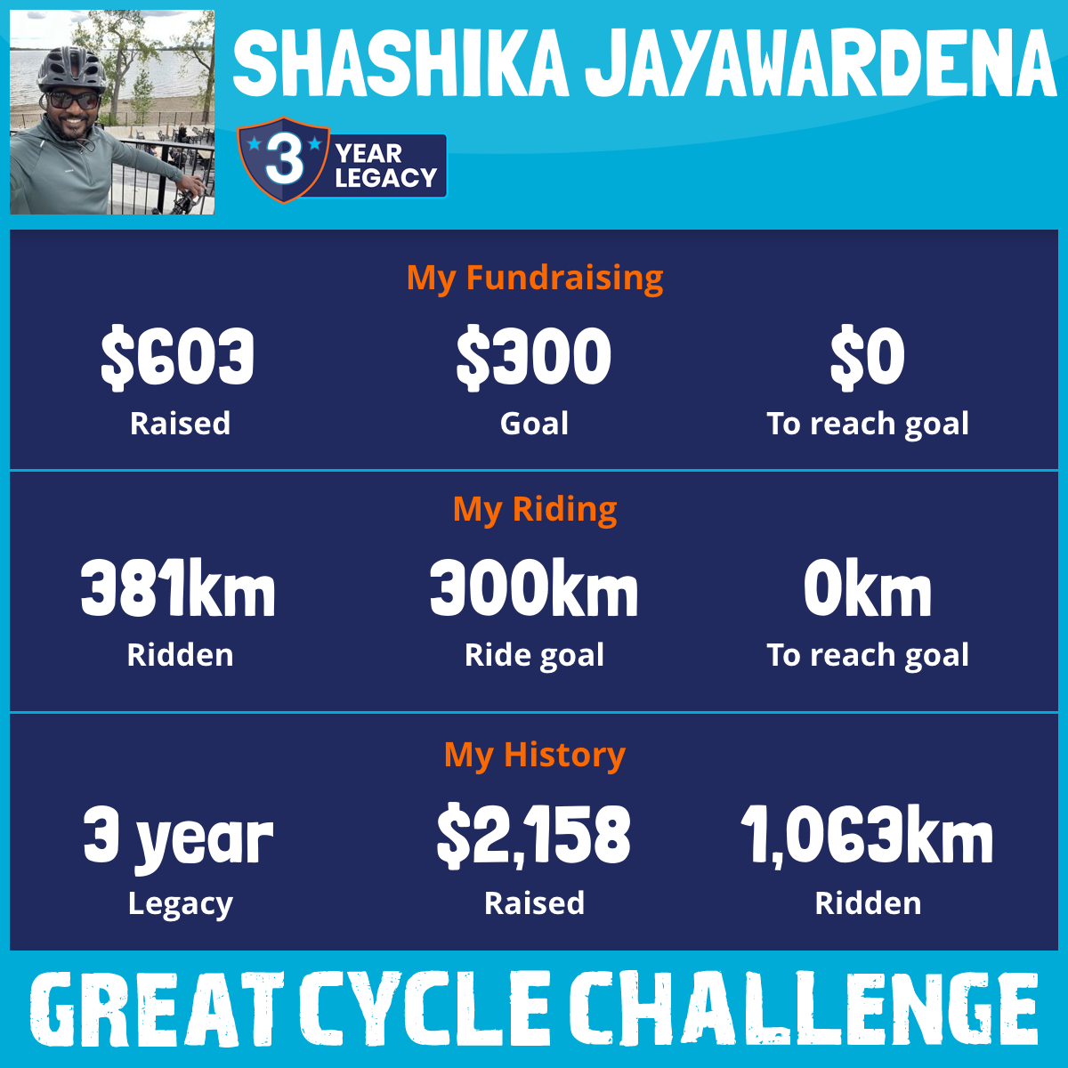 381 km Ridden$603 Raised2026