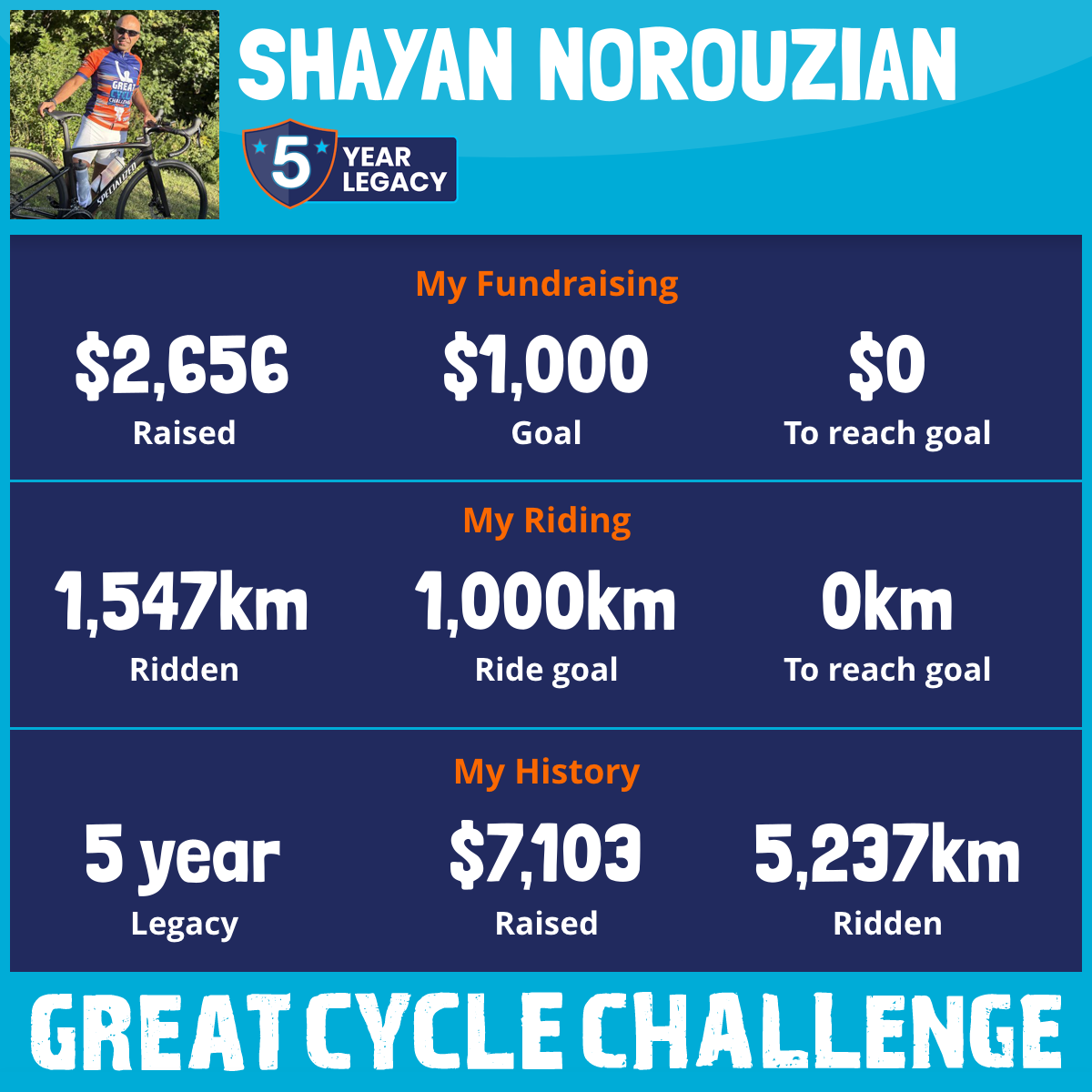 1,043 km Ridden$1,237 Raised2023