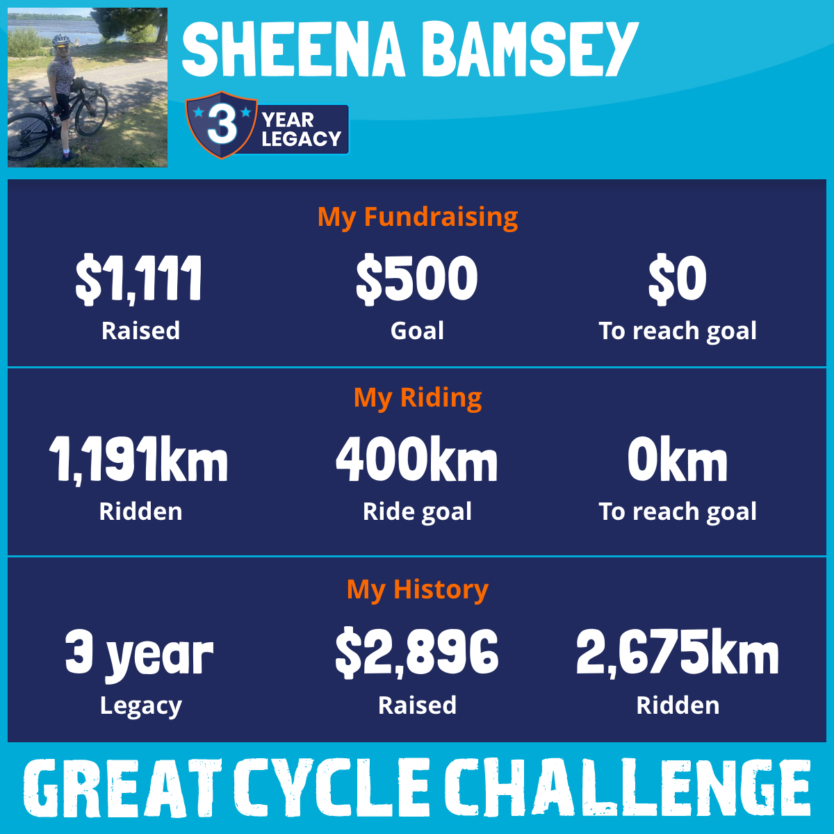 1,191 km Ridden$1,111 Raised2025