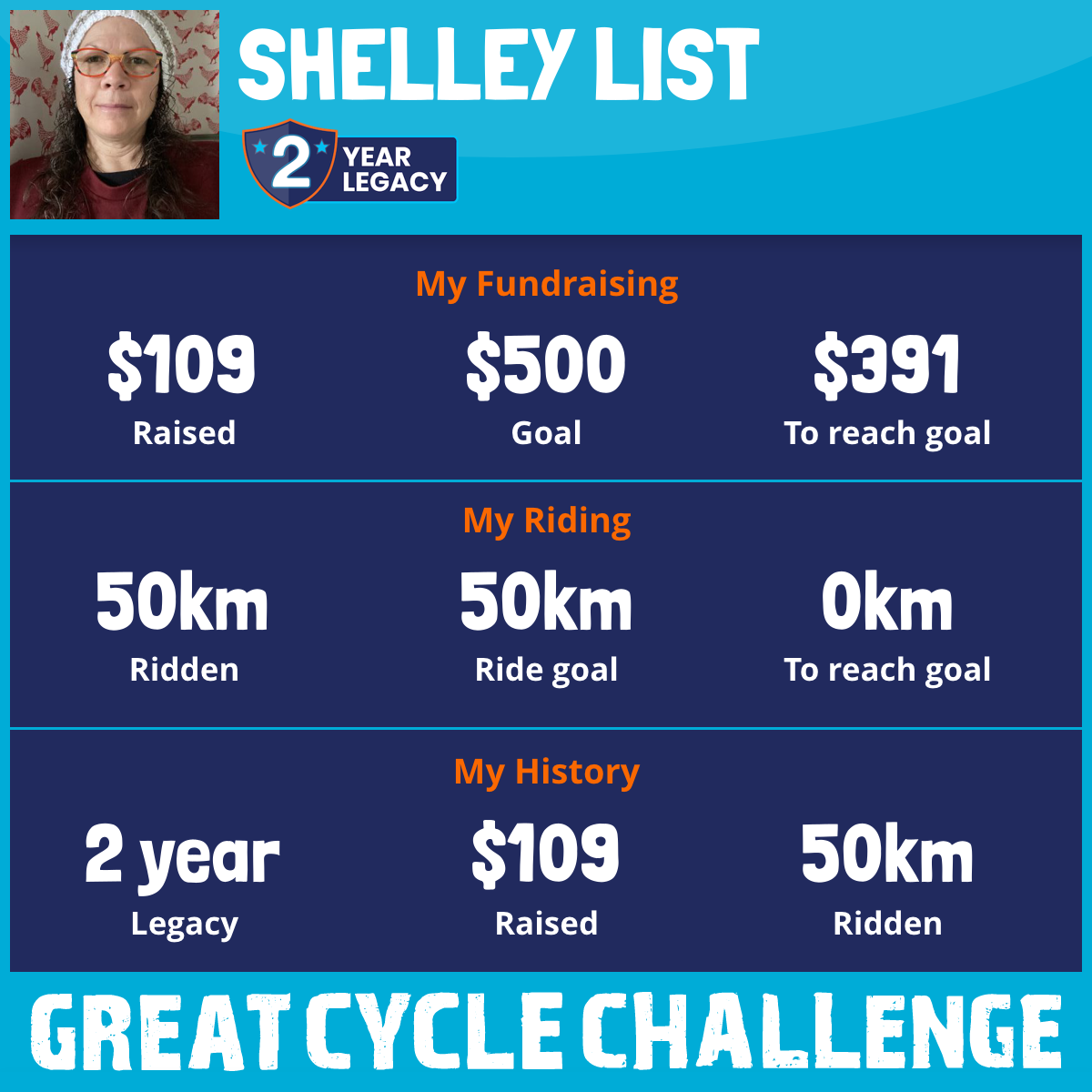 50 km Ridden$109 Raised2025