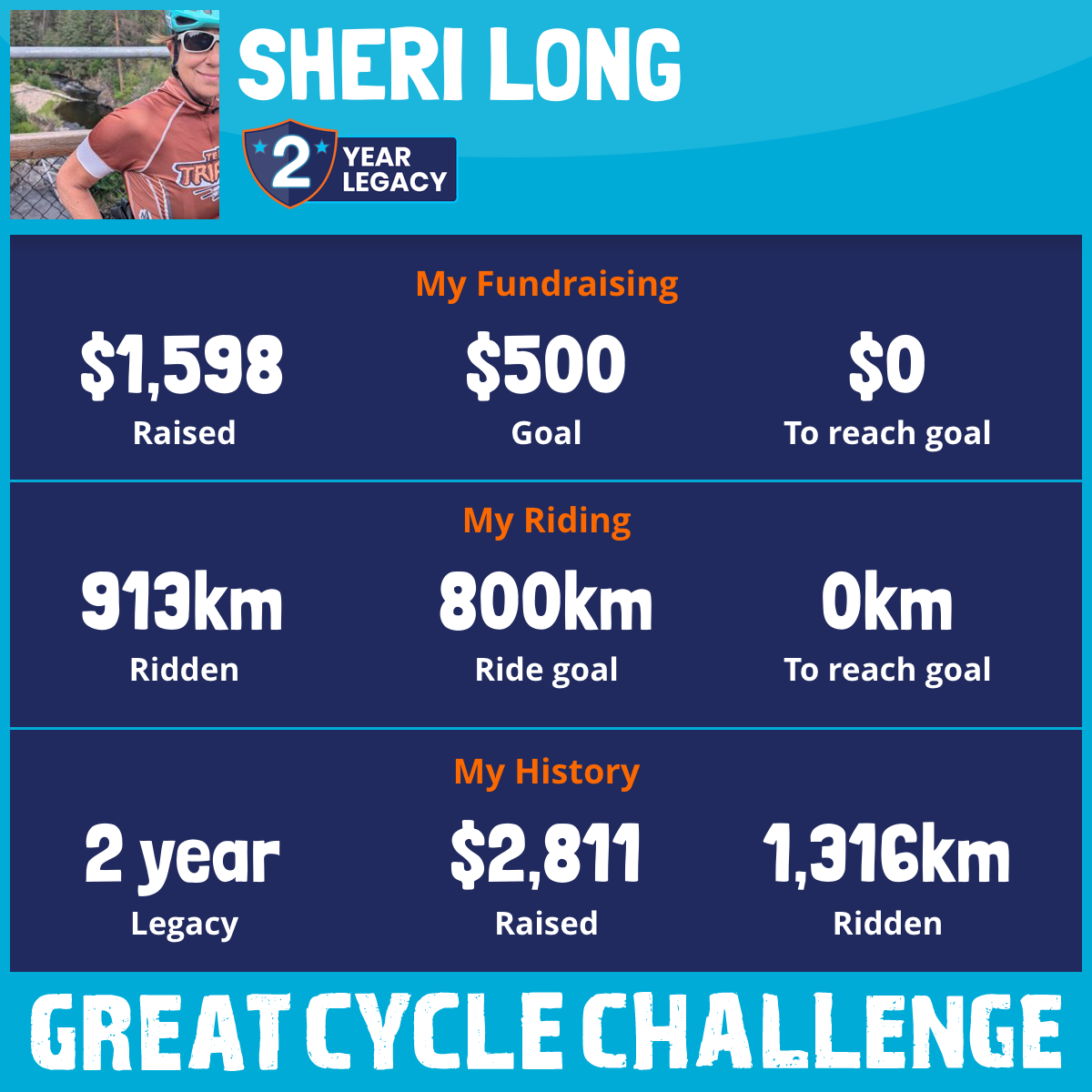 913 km Ridden$1,598 Raised2026