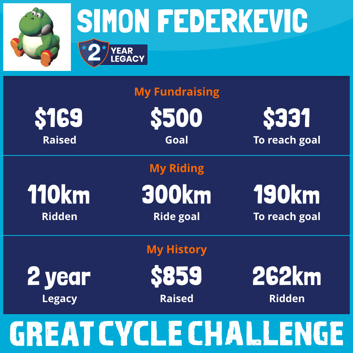 110 km Ridden$169 Raised2026